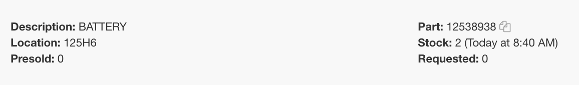 Selecting one of these parts will auto-fill the DMS provided description, part number, stock on hand, and price.