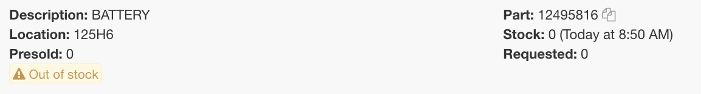 Parts Lookup and Availability will also provide a clear indicator when a specific part is marked as Out of Stock in the DMS.